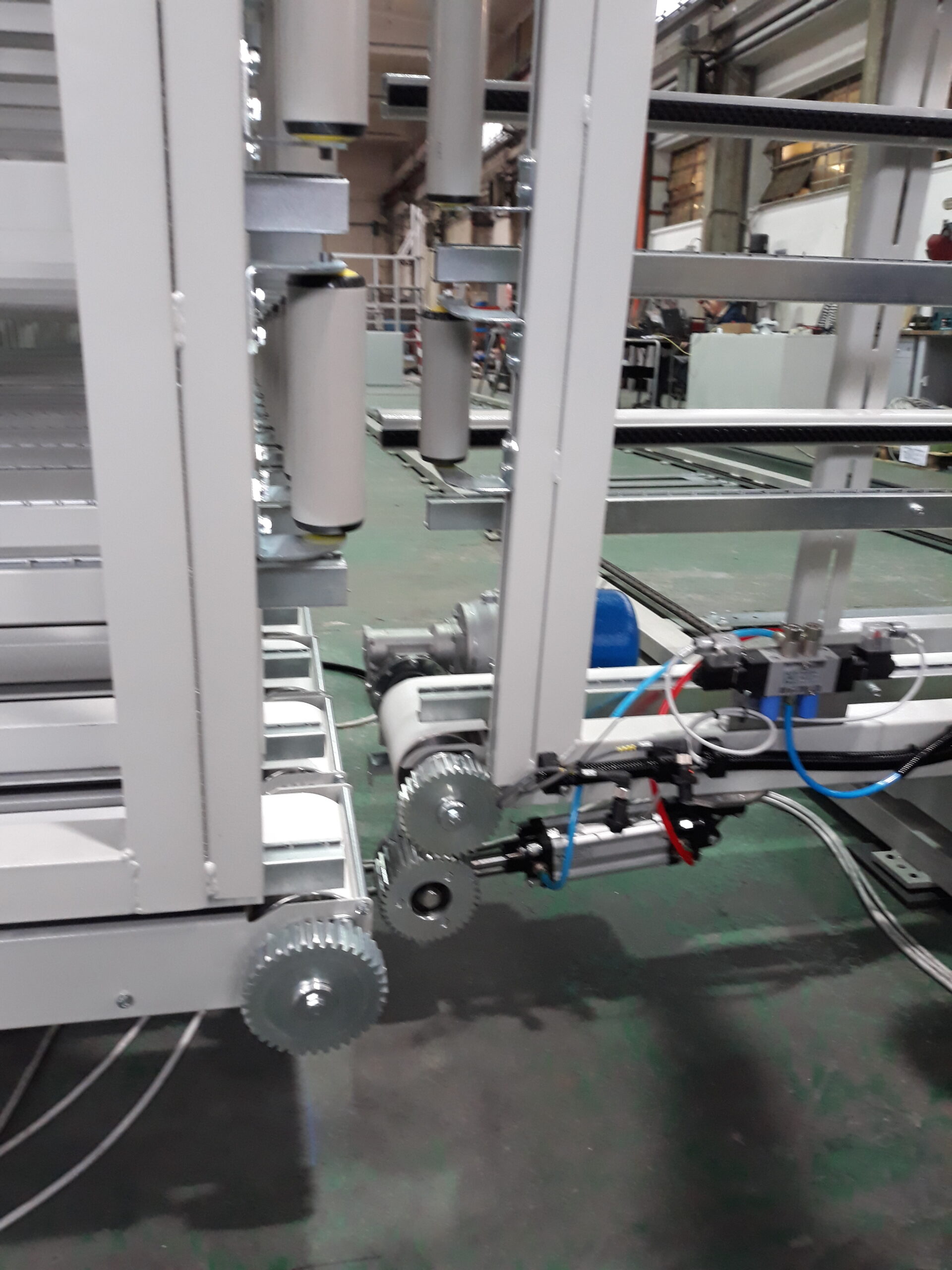 - Rack and pinion system for transmitting motion to the warehouse conveyors.