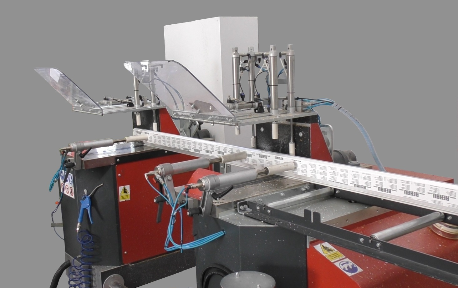 - Optimized extraction and clamping. Equipped with 4 Ø 100 mm chip extraction outlets and vertical/horizontal pneumatic clamps to firmly secure profiles.