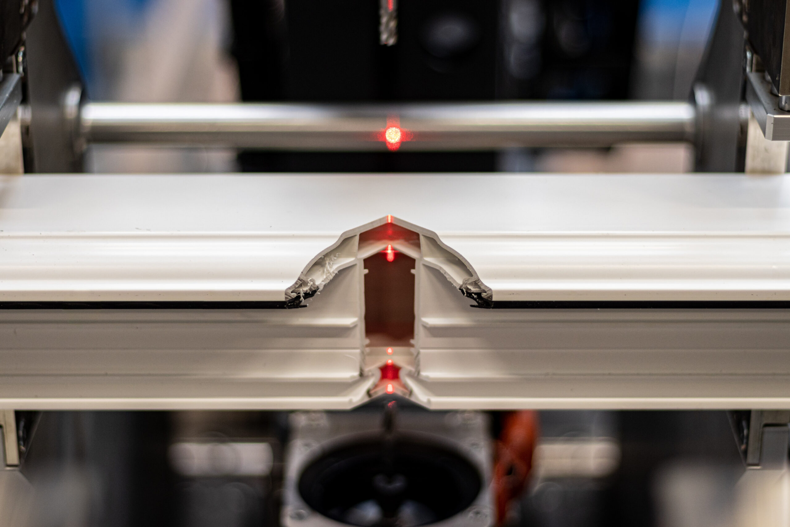 The SL3 FF TV is not just a welding machine; it is a true production centre for PVC windows with a welded “V” transom. This inline 3-head machine allows for the welding of both outer corners of the frame and the central transom in a single cycle, ensuring a flawless finish without the need for touch-ups.