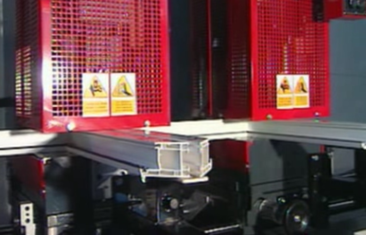 In just two cycles, it is possible to create a complete window with a central crossbar. The three heads operate in line, and two of them can rotate 90° to simultaneously weld both ends of a crossbar.