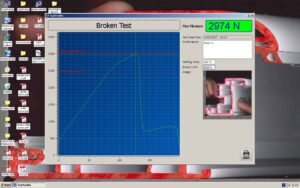 - Immediate Break Load Analysis. A hydraulic piston applies a constant force on the welded joint until failure, highlighting the maximum peak.